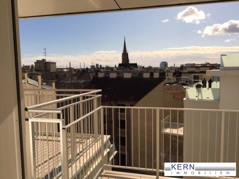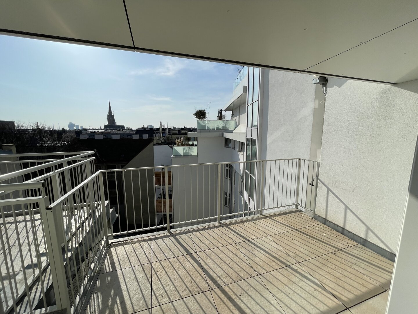 Von der Terrasse vor dem Wohnzimmer geniesst man einen unvergleichlichen Panorama-Blick über die Dächer Wiens!
