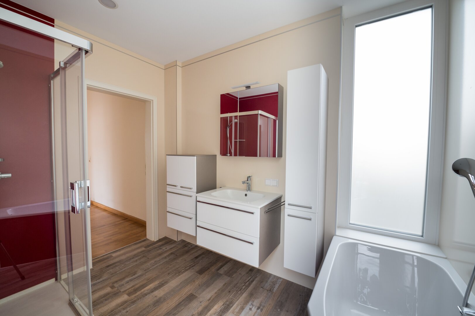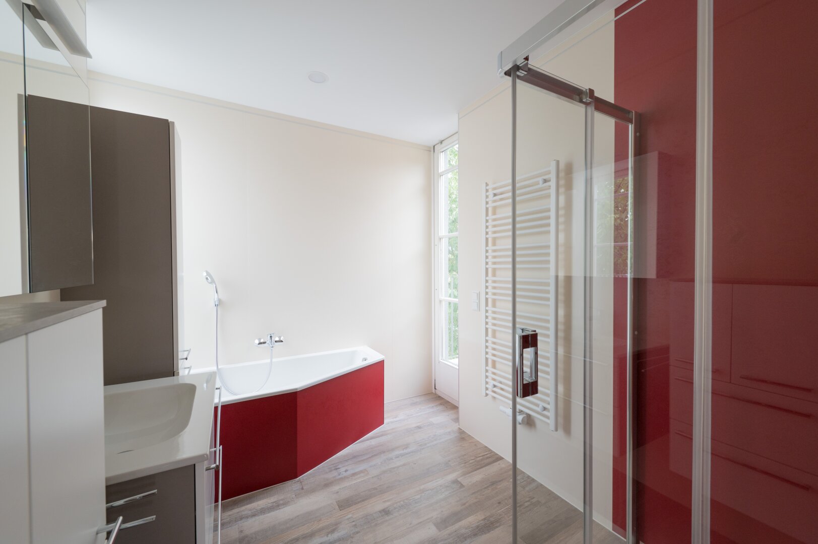Die Schlafzimmer im Obergeschoß mit Bad als Wohlfühloase haben sogar eine Terrasse, wo Sie mit offener Türe noch die Abendluft beim Einschlafen genießen können.