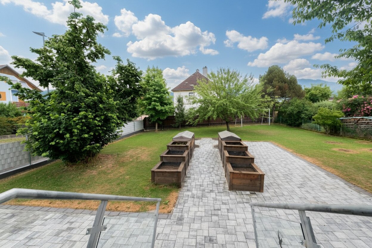 Der Frühling naht und die ersten wärmenden Sonnenstrahlen locken das Gras und die ersten Frühlingsboten aus dem Boden! Nutzen Sie die Gelegenheit und finden hier einen vorbereiteten Garten mit Hochbeeten und einem Glashaus, wo Sie Ihren eigenen Salat anpflanzen und Ihre Blumen ziehen können! Während die Kinder im Garten toben, nutzen Sie die Auszeit für ein schönes Glas Wein und sehen ihnen beim Spielen zu.