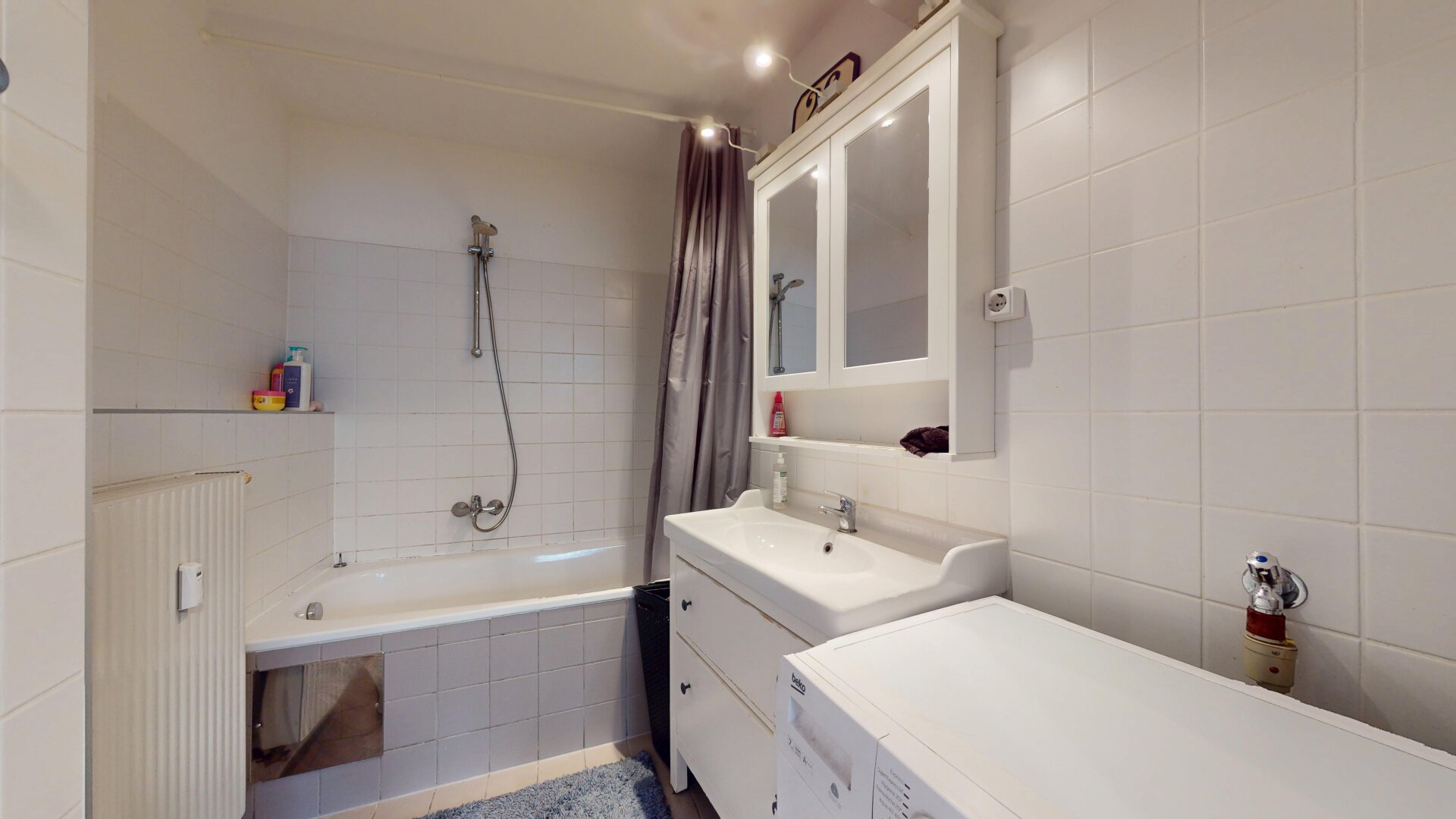 - Bad & WC: Badezimmer mit Badewanne und Waschmaschinenanschluss.