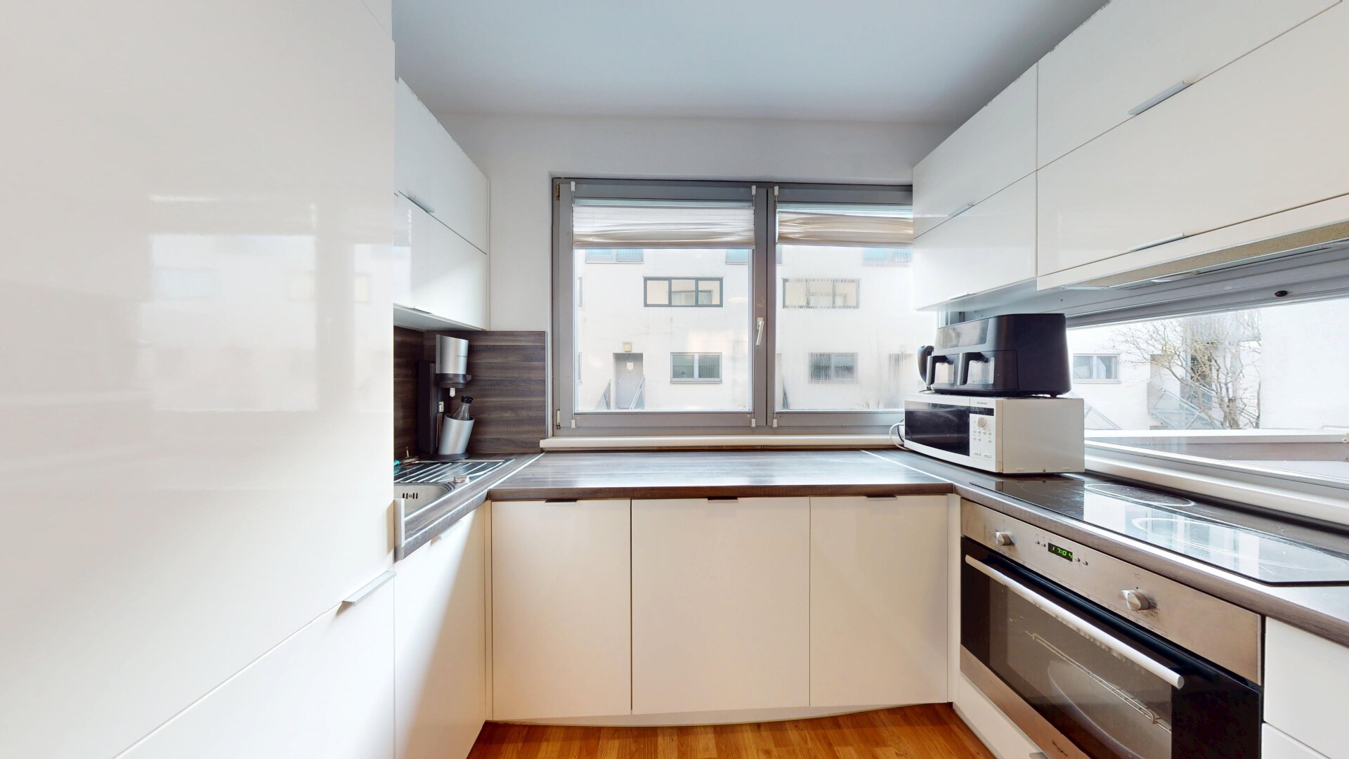 - Küche (2015): Ein echtes Highlight! Die helle Küche ist wie eine Loggia angelegt, bietet viel viel Licht und ist durch eine Tür vom Wohnraum trennbar.