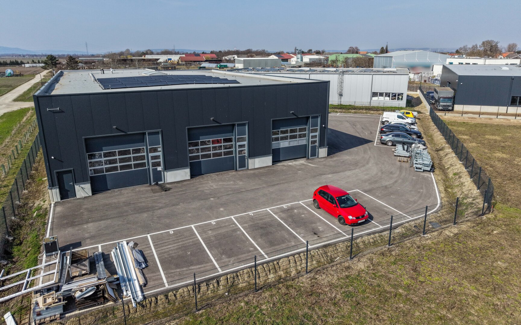 - Komplett eingezäunt & asphaltiert