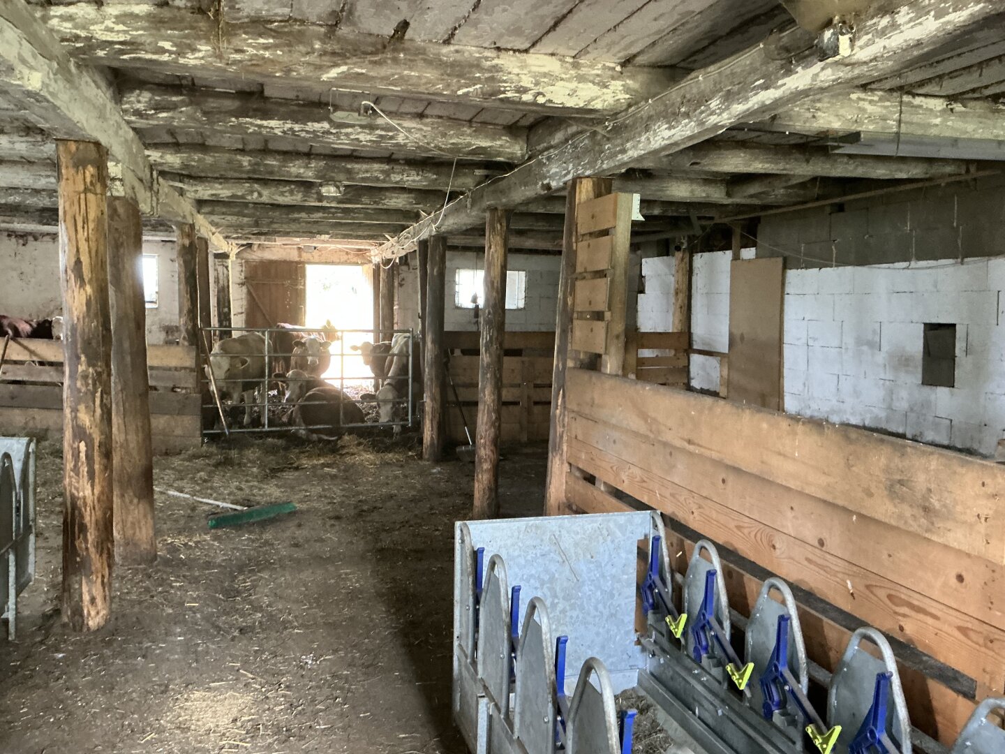 - Der Stall wird derzeit als offener Freilaufstall genutzt und bietet eine optimale Raumhöhe für die Pferdehaltung.