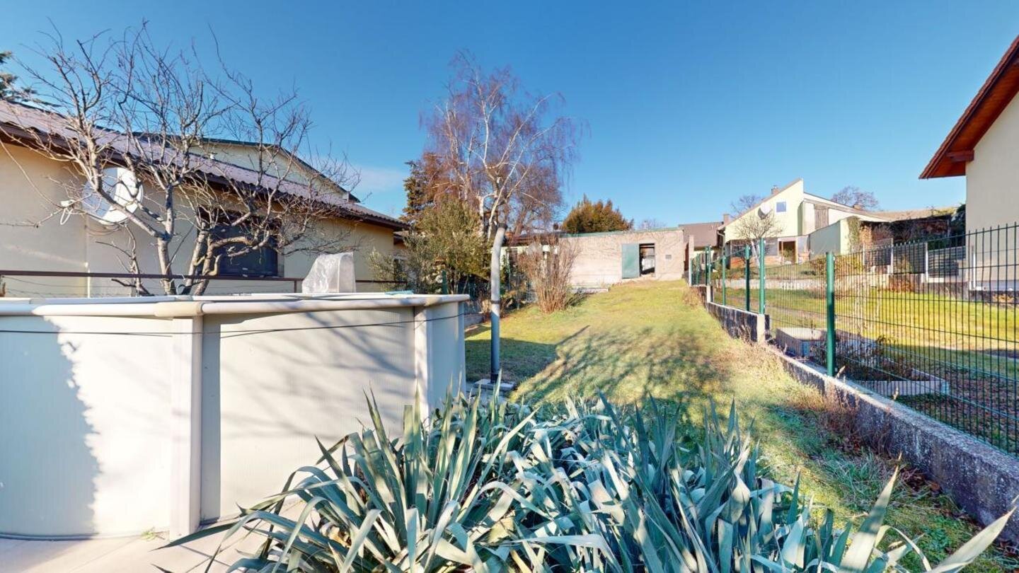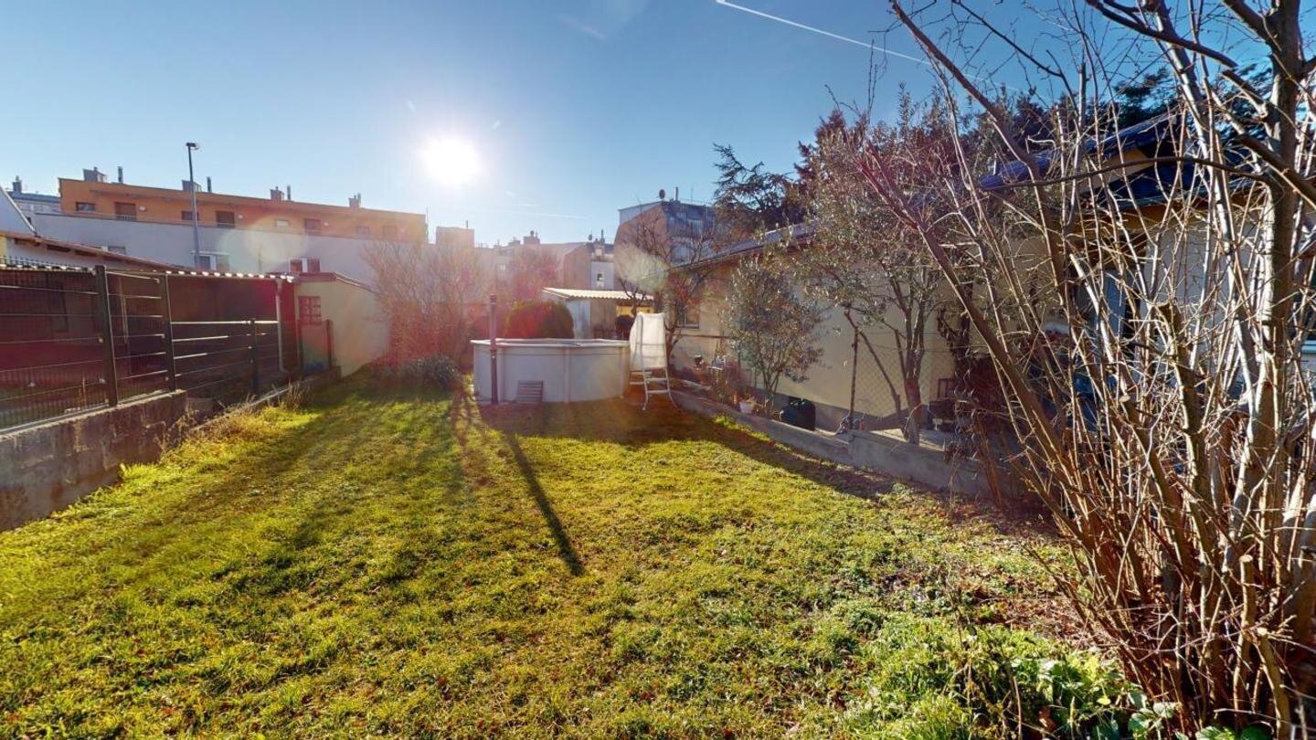 Durch die Bebaubarkeit von 50% im hinteren Teil wären auch zusätzliche Wohnbereiche möglich, oder man genießt die herrliche Gartenperspektive in Richtung Süden.