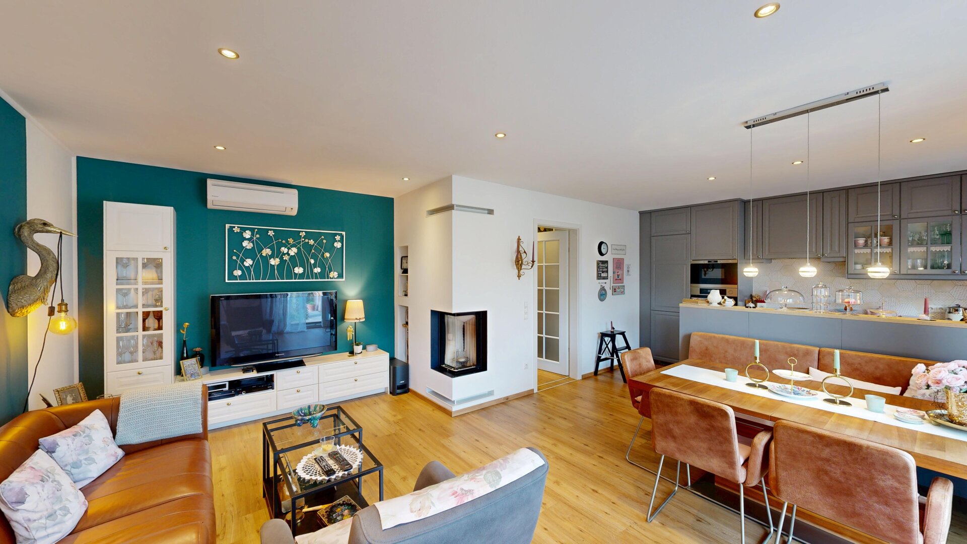 Die Heizung erfolgt über eine Luftwärmepumpe mit Fußbodenheizung (einzeln regelbar) und Fancoils zur Klimatisierung.