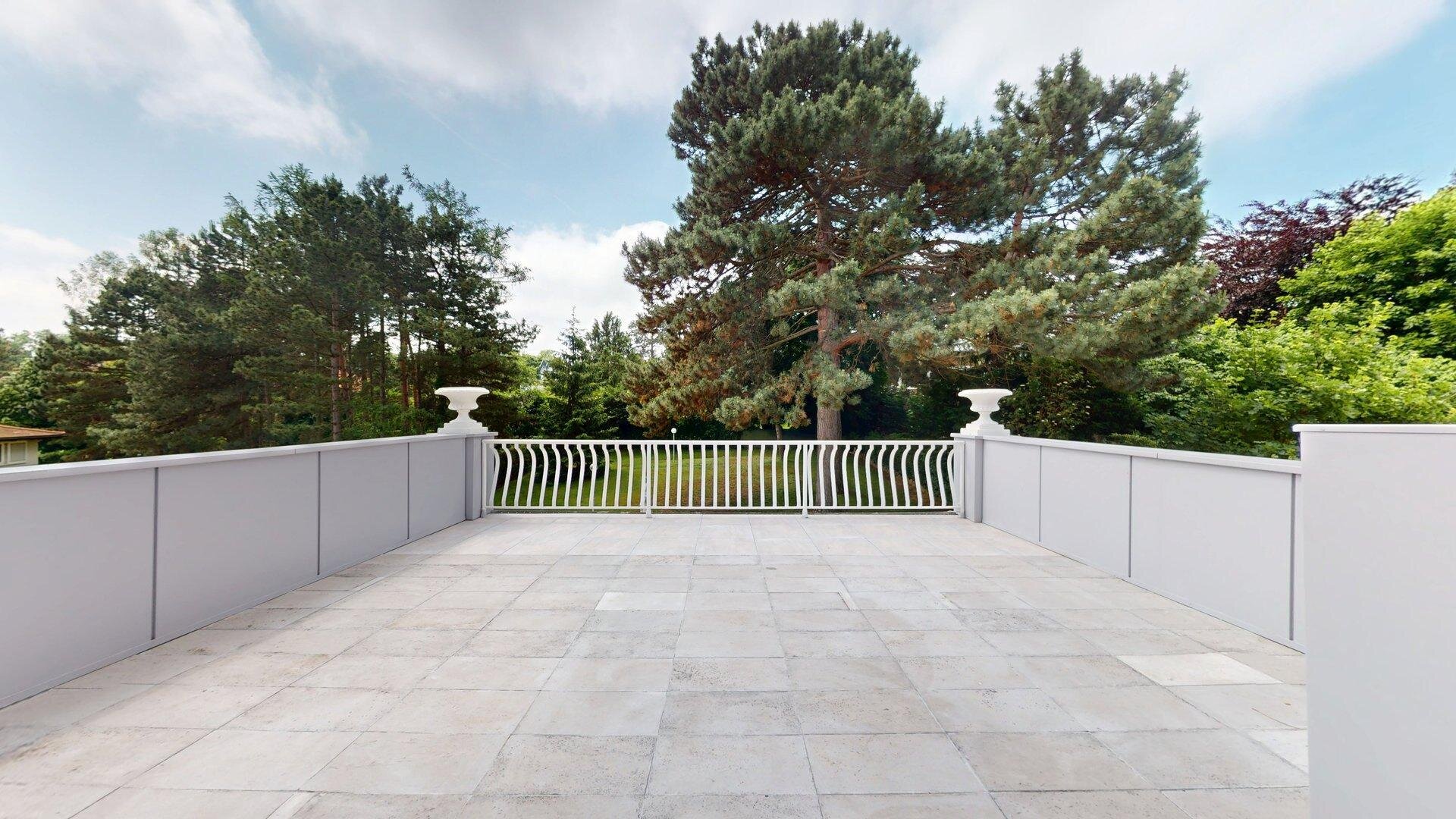 - Obergeschoß 1: Ab dem 1. Obergeschoß finden Sie die privaten Schlafräumlichkeiten vor. Auf dieser Ebene wären 2 reine Schlafzimmer zu realisieren, und mit Ausgang auf die große Süd-Terrasse könnte man ein zweites Wohnzimmer implementieren. Einen weiteren Anschluss für eine etwaige Küche, gäbe es im "Büro-Zimmer", gleich neben dem Balkon gelegen, mit Blick über die umliegenden Baumwipfel.
