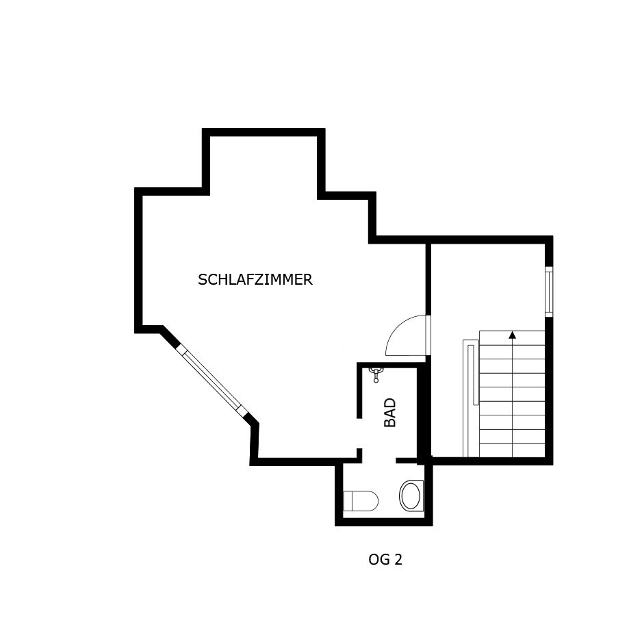 - Obergeschoß 2: Beherbergt das letzte Schlafzimmer, mit angrenzendem Badezimmer.