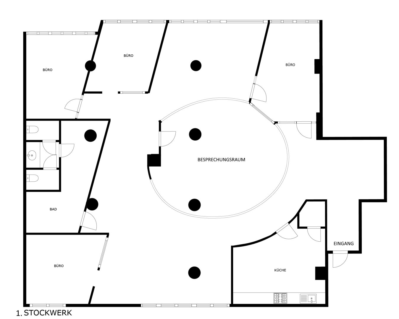 Moderne Büro- oder Praxisfläche mit zentralem Besprechungsraum und barrierefreiem Zugang